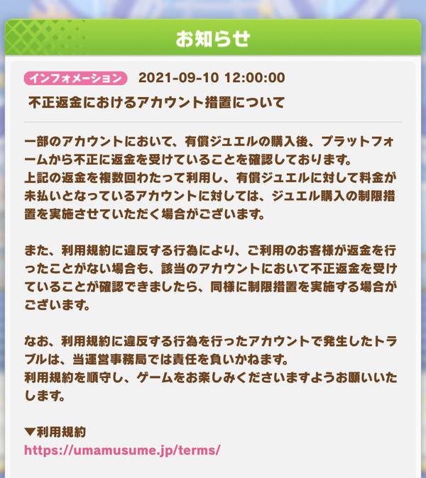 【ウマ娘】不正返金が運営に把握されててワロタwww