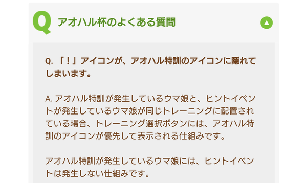 【悲報】Q.「!」アイコンがアオハル特訓に隠れてしまいます A.仕組み通りの動作です
