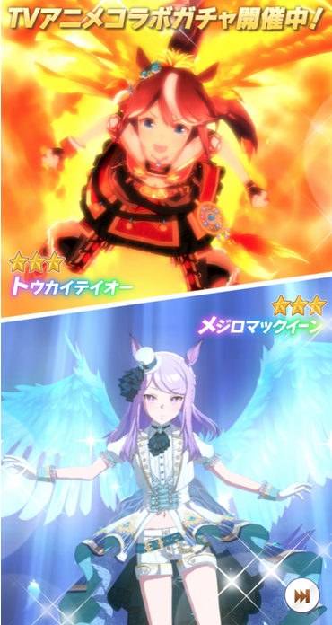 【速報】TVアニメコラボガチャ開催 新衣装テイオー&マック SSRサポキタサンブラック&サトノダイヤモンド登場!!!