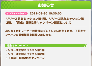 【朗報】育成報酬2倍キャンペーン&リリース記念ミッションが延長決定【ウマ娘】
